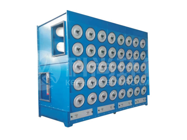 濾筒除塵器的結(jié)構(gòu)是由進風(fēng)管、排風(fēng)管、箱體、灰斗、清灰裝置、導(dǎo)流裝置、氣流分流分布板、濾筒及電控裝置組成,類似氣箱脈沖袋除塵結(jié)構(gòu)。